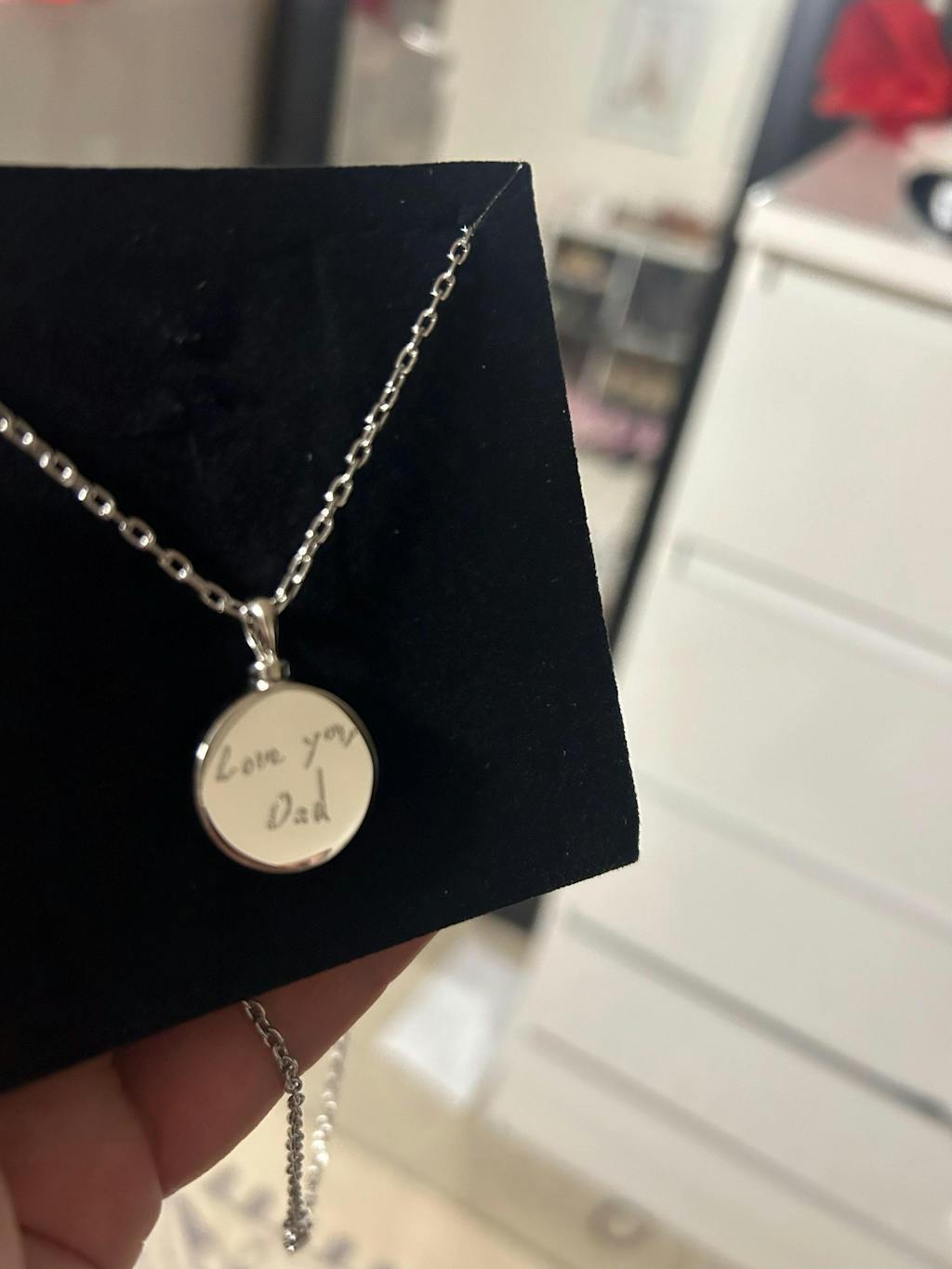 I can’t begin to describe how amazing this turned out!!! My dad passed away before he was able to walk me down the aisle, so I ordered this to put some of his ashes in and attach it to my bouquet — that way he’s still with me as I walk down the aisle. It’s engraved with his handwriting from one of the last cards he gave me. It’s so very special and beautiful. My fiancé and I both cried when we opened it. 1000/10 would recommend this seller and product!!!